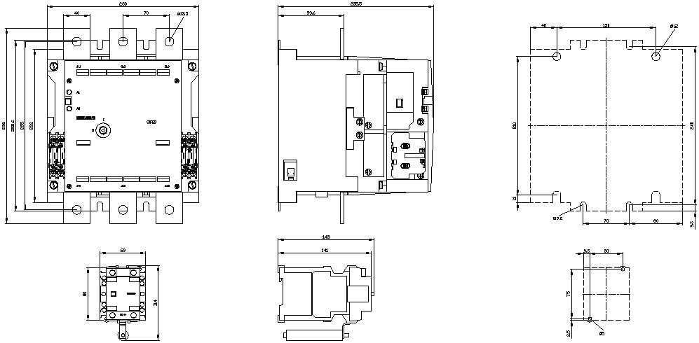 Siemens 3TF69331DB4 3TF6933-1DB4 contactor 14 3P AC-3, 400 450kW / 380V (690V) (3NO + 3NC)