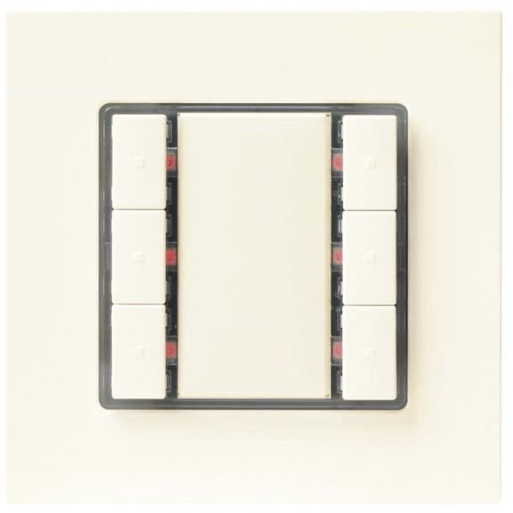 with function selectable per button pair: 2-button dimming with stop telegram, 2-button sun protection control, 8-bit value variable sending, percentage value variable sending, 1-bit scene control, 8-bit scene control, forced operation,