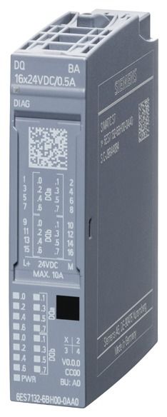 SIMATIC ET 200SP, digital output module, DQ 16x 24VDC/0.5A Basic, packaging quantity: 10 pieces, suitable for BU type A0, color code CC00, module diagnostics With SIMATIC ET 200SP, Siemens offers you a multifunctional and decentralized I/O system that can be put into operation very easily thanks to its space-saving design. It is approved for protection class