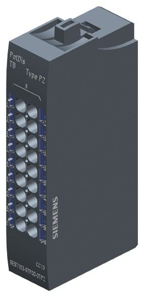 SIMATIC ET 200SP, potential distribution module, PotDis terminal block, PotDis-TB-P2-B, 18 x P2 potential, push-in terminals Packaging quantity: 1 piece, SIMATIC ET 200SP is a modular, scalable and highly flexible, decentralized I/O system. Due to its small footprint, it is particularly designed for installation in small control boxes close to the machine. The modules can either be plugged directly into an ET 200SP CPU or connected to a central controller via PROFINET or PROFIBUS. SIMATIC ET 200SP can be expanded with up to 64 I/O modules that can be plugged in in any combination. The system offers a very extensive range of modules. Many modules are also available in different versions, which significantly improves scalability in terms of functionality and price. In addition to modules with standard functionality (ST), there are also modules with an extended range of functions and diagnostics (HF High Feature / HS High Speed). Modules with basic functionality (BA) are available for price-sensitive applications. The advantage of the ET 200SP system lies in its ease of use, for example through the free choice of PROFINET connection technology via the bus adapter, tool-free wiring using push-in technology, improved accessibility of the wiring through the new arrangement of the spring openers next to the associated conductor opening and the channel-specific diagnostic functions. The availability and productivity of the machine are ensured by the option of changing modules and terminal boxes during operation, known as hot swapping. The scalable and cost-optimized configuration of an ET 200SP station is guaranteed by the comprehensive range of signal modules. In addition to digital and analog input and output modules, fail-safe variants are also available for applications up to SIL 3 / PLe. This also applies to the integrated motor starters, which are suitable for motors up to 5.5 kW. Energy meters for measuring and analyzing energy consumption, IO-Link Master (V1.1.) and many other communication and technology modules enable the system to adapt to any automation task. Using the potential distribution modules, which can be combined with the corresponding BaseUnits as desired, space in the control cabinet can be saved by eliminating terminal blocks and clarity can also be increased.