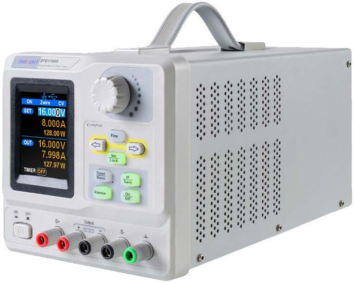 SPD1305X Maximum output power 128W 150W Channel output Output voltage: 0 to 16V Output current: 0 to 8A Output voltage: 0 to 30V Output current: 0 to 5A Display 2.8 inch true color TFT LCD with 5-digit voltage/4-digit current 2.8-inch true color TFT LCD with 5-digit voltage/4-digit current Resolution 1mV/1mA 1mV/1mA Program accuracy Voltage: ± (0.03% of reading + 10mV) Current: ± (0.3% of reading + 10mA) Voltage: ± (0.03% of reading + 10mV) Current: ± (0.3% of reading + 10mA) Constant current mode Line regulation = 0.2% + 3mA Load regulation = 0.2%