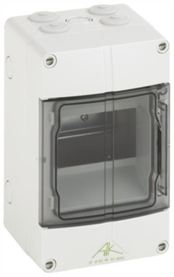 IP 65 AC 400 volts according to VDE 0603 - 1-5 rows, 14 modules per row, folding doors, smoked glass colored, either clockwise or counterclockwise possible, prepared for mounting lock, lead seal, front face introductions with perforation membranes, 35 mm DIN rails for modular devices in multi-row distribution boards 150 mm spacing, including PE / N terminals, cover strips and marking strips. . Starting AK 14 cable cover enclosed