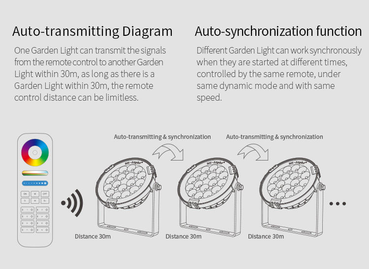 Controllable with radio remote control and/or WLAN controller for iOS and Android, both available separately, see accessories