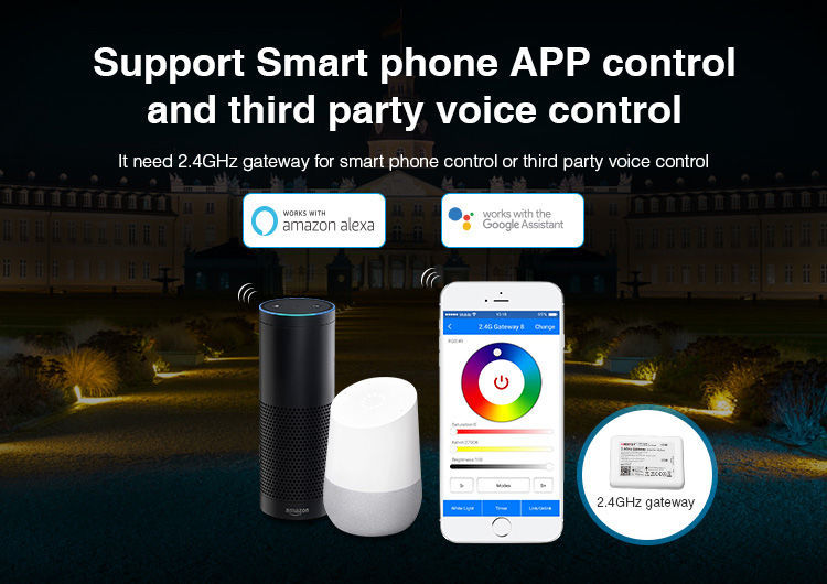 Controllable with radio remote control and/or WLAN controller for iOS and Android, both available separately, see accessories