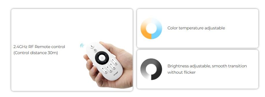 We offer you Synergy 21 LED Controller CCT (2 wires) 2,4G *Milight/Miboxer* always at the best possible price. We can give you a discount of 2% on Synergy 21 LED Controller CCT (2 wires) 2,4G *Milight/Miboxer* if you choose payment in advance on ordering.