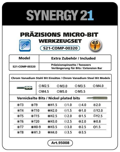 You can also send us a price proposal for your desired quantity of Synergy 21 bit set, screwdriver set, toolkit via the form price proposal. Enter your name, contact details, price and quantity you need. Our sales team will then send you a good quotation immediately.