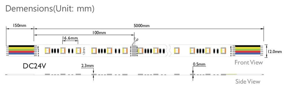 DC 24V, 120W, 24W/m, 9.6W/m for white and 14.6W/m for RGB