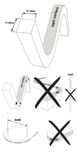 Please note that LED strips also need to be cooled. Make sure that the LED strip does not exceed the working temperature of 40°C, otherwise the service life cannot be guaranteed. No guarantee can be given on overheated LED strips.