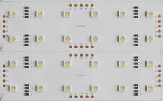 with 6 connectors RGBW: 3100lm, RGB: 1940lm, NW: 1250 Beam angle: 120° Protection class: IP20 LED number: 24 rows * 12 columns = 288 LEDs in total, type: 5050SMD Dimensions: 480*240mm PCB color: white Working temperature: -25°C to +40 °C Weight: 0.500 kg Can be shortened all 12 LEDs 120*40mm Maximum length Single row/single column @ power one-sided: 4m Adhesive tape: yes 3M on the back Energy efficiency class: A kWh/1000h: 88 Strip/plate can be shortened at the cutting marks with sharp scissors. !Danger! Strip/Plate must first be checked for functionality. Only share strip/plate when there is no power. Our 3M adhesive tape is well-adhesive, but should still only be seen as an assembly aid. There are a variety of fastening options, such as clips, permanently elastic mounting adhesive, cable ties, etc. Please note that LED strips/plates also need to be cooled. Make sure that the LED strip/plate does not exceed the working temperature of 40°C, otherwise the service life cannot be guaranteed. No guarantee can be given on overheated LED strips/plates.