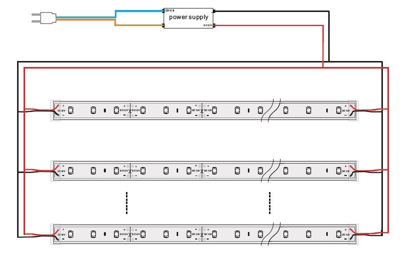 Please note that LED strips also need to be cooled. Make sure that the LED strip does not exceed the working temperature of 40°C, otherwise the service life cannot be guaranteed. No guarantee can be given on overheated LED strips