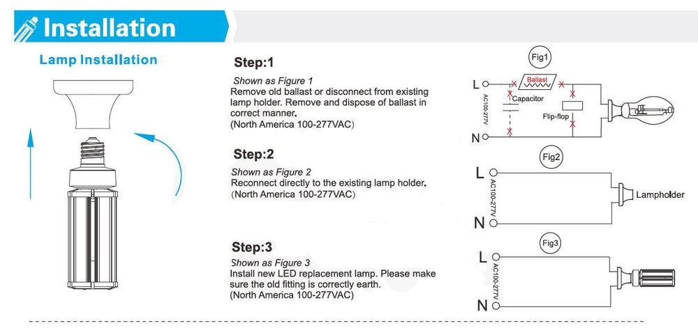Fitting accessory for Synergy 21 LED HID Corn E40 360° 63W nw with ii