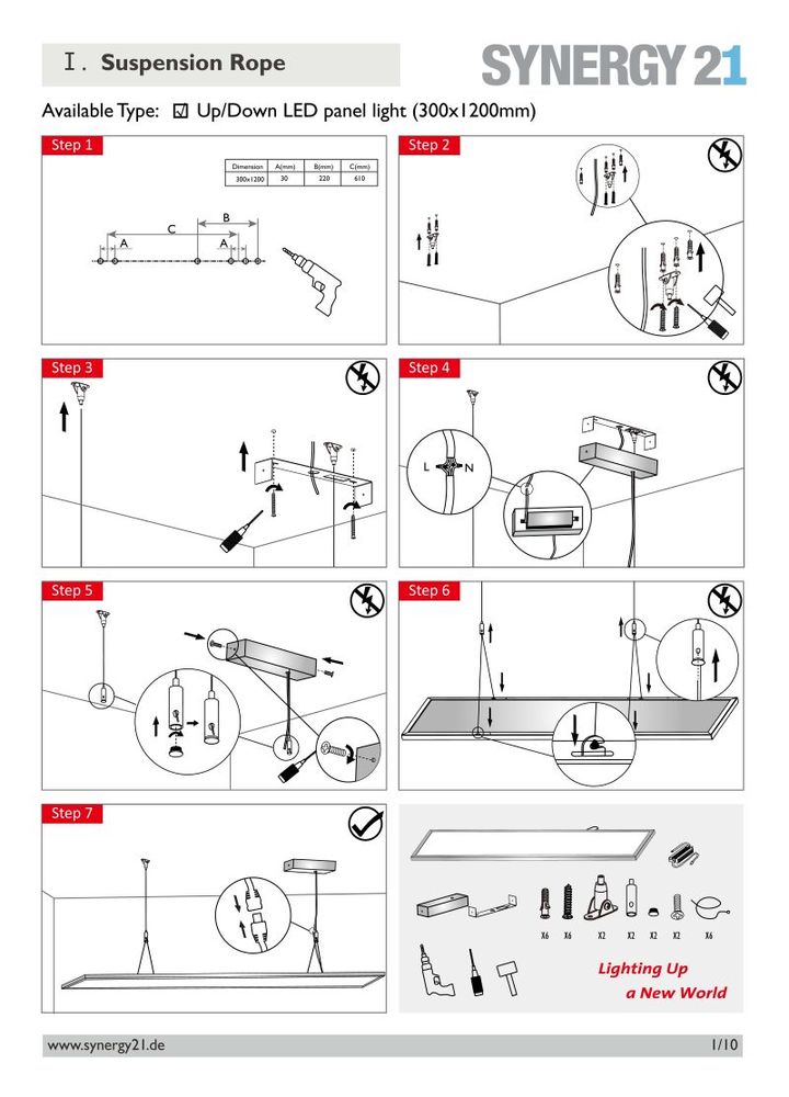 Synergy 21 LED light panel 298 * 1198 Up & Down zub. plug