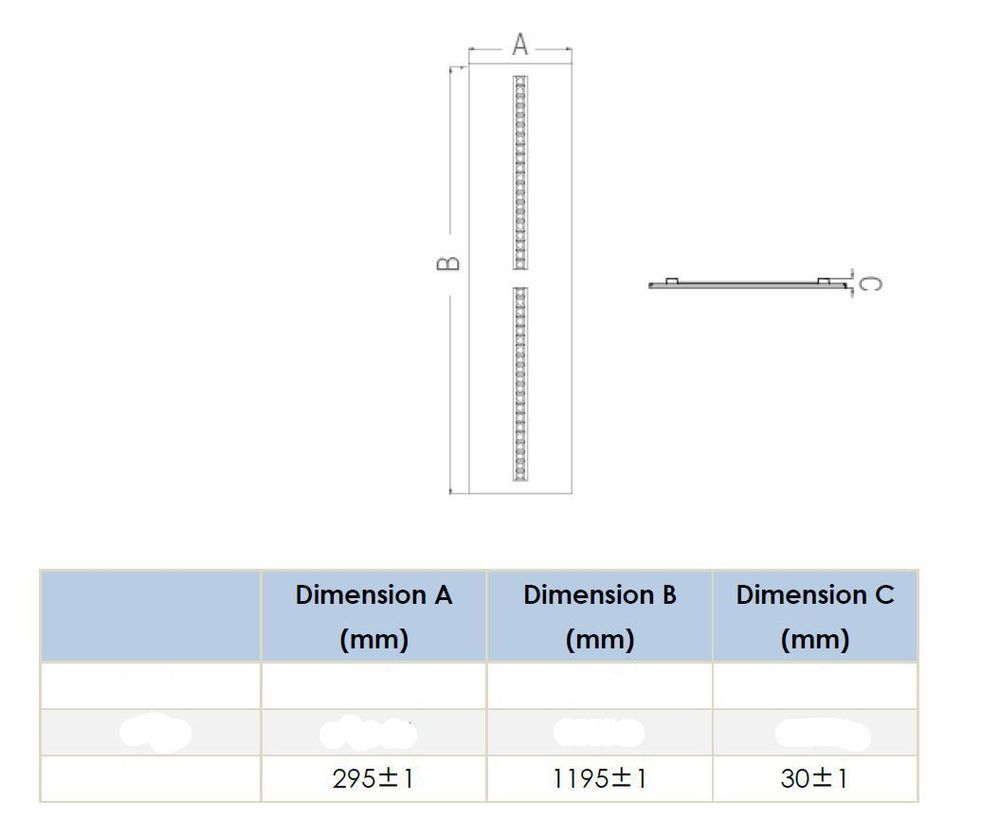 Size (external dimensions): 295mm x 1195mm x 30mm