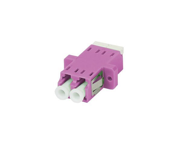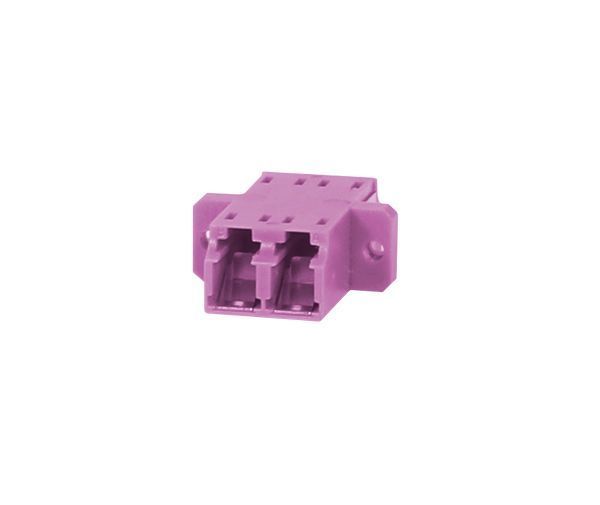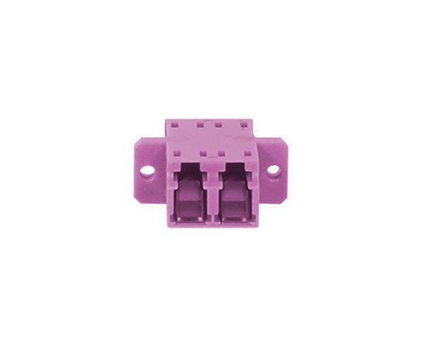 The article Fiber optic coupling, LC socket/LC socket, 50/125u multimode OM4, heather violet, duplex, PVC, with flange, with one-sided laser protection flap, Synergy 21 is currently in stock