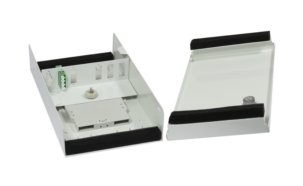 Fitting accessory for Fiber optic wall distributor mini (surface-mounted), for LC/SC, W150/H265/D55mm, without couplings/splice cassette, white, Synergy 21