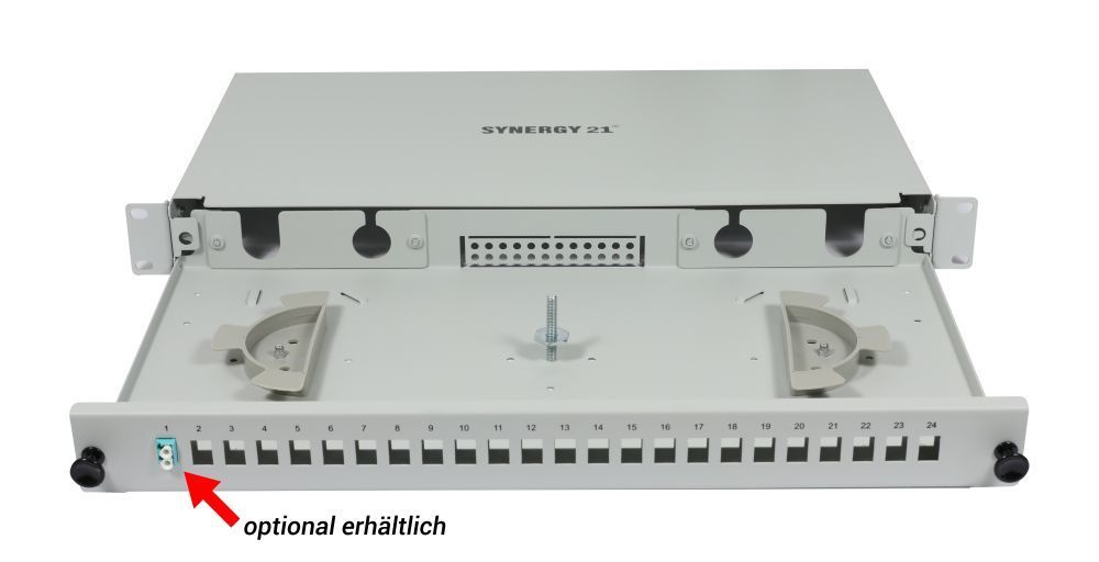 We offer you Fiber optic patch panel 24xLC duplex sockets, 48,3 cm ( 19 inch ), OM3, 50/125u multimode, light gray, Synergy 21 always at the best possible price. We can give you a discount of 2% on Fiber optic patch panel 24xLC duplex sockets, 48,3 cm ( 19 inch ), OM3, 50/125u multimode, light gray, Synergy 21 if you choose payment in advance on ordering.