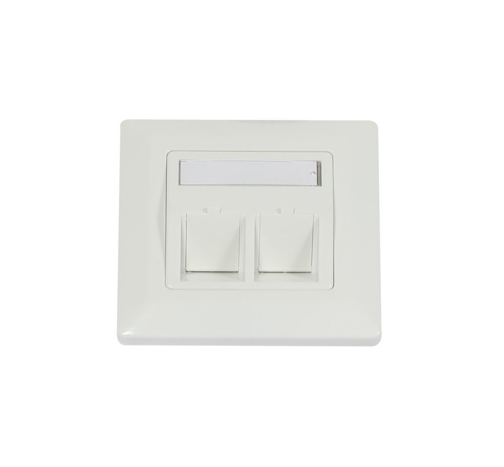 The article Dosen TP,AP,2-fach(Eckiger Außenrahmen),CAT6A, Keystone Short, Reinweiss, Synergy 21, is currently in stock