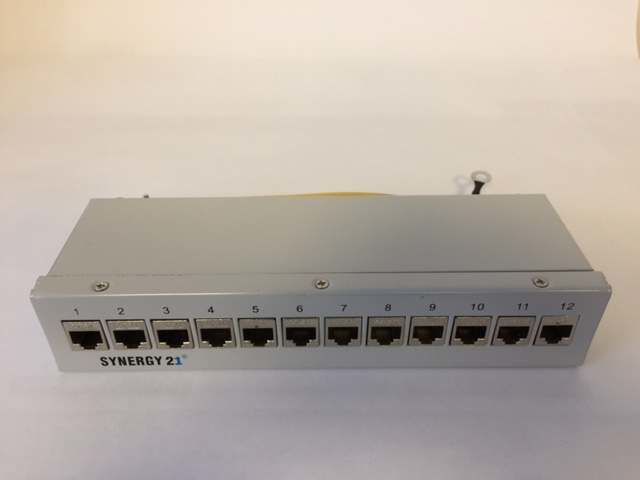 The article Patch panel 12xTP-TP (coupling), CAT6A, incl. Keystone Slim-line, surface-mounted metal, light gray, Synergy 21 is currently in stock