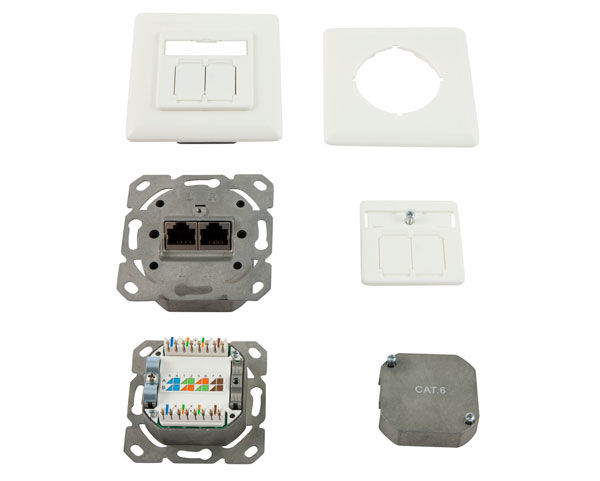 Sockets TP, AP, 2-fold, CAT6, pure/signal white, horizontal cable entry