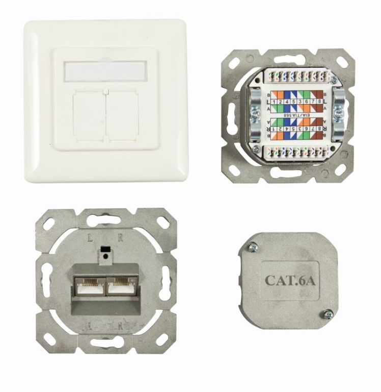 Cans TP, UP, 2-fold, CAT6A, 500Mhz, pure white, Synergy 21, horizontal rear cable entry