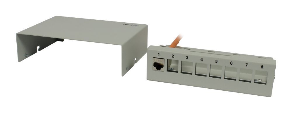 Fitting accessory for Keystone, module carrier, patch panel for 8x TP module, surface-mounted, metal, light gray, Synergy 21