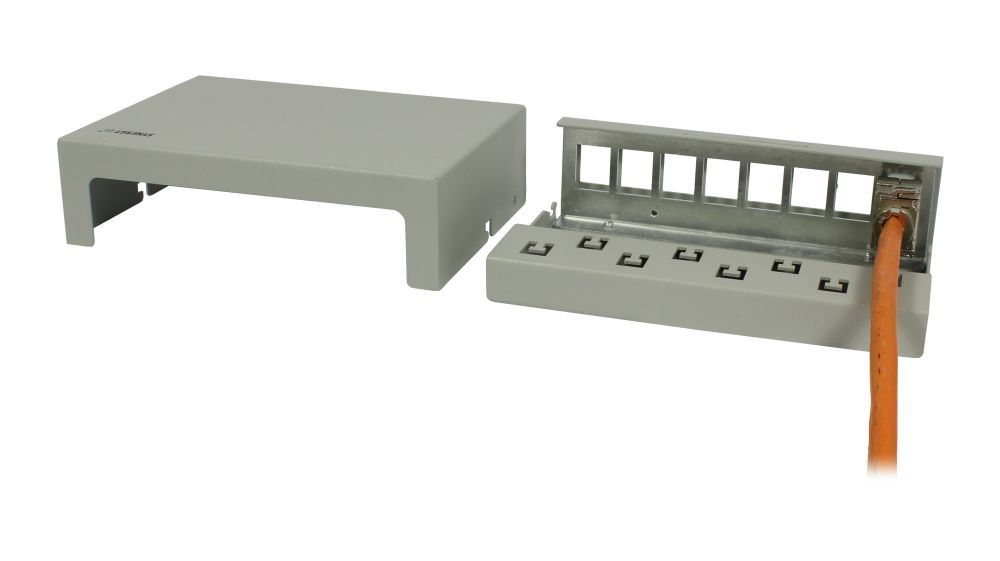 Keystone, module carrier, patch panel for 8x TP module, surface-mounted, metal, light gray, Synergy 21