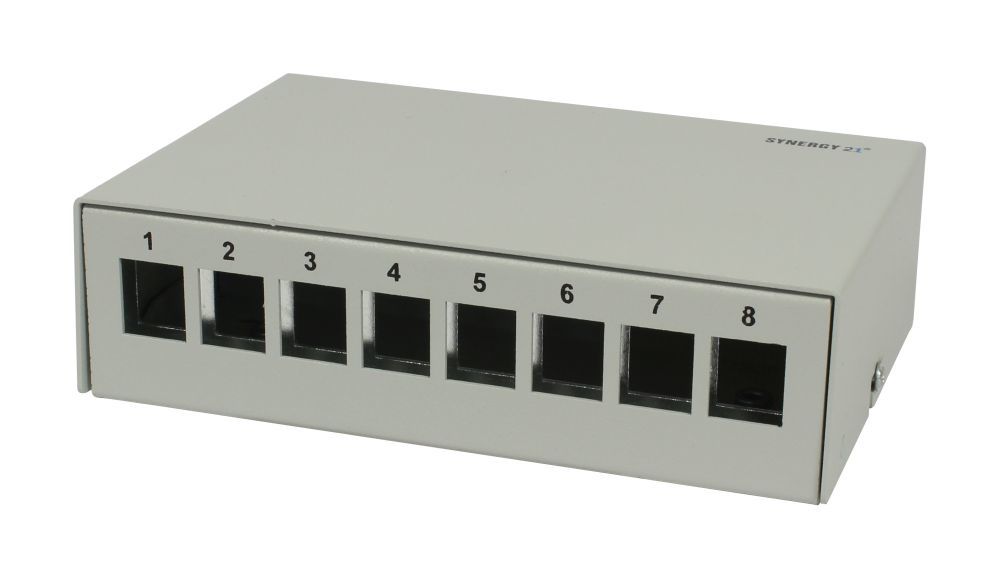 The article Keystone, module carrier, patch panel for 8x TP module, surface-mounted, metal, light gray, Synergy 21 is currently in stock
