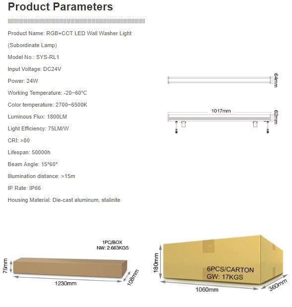 Product Name: 15W RGB+CCT LED Garden Light (Subordinate Lamp) Model No.: SYS-RC2 Input Voltage: DC24V Power: 15W Working Temperature: -20~60? Color temperature: 2700~6500K Luminous Flux: 1200LM Light ...Lieske Part No.: 1376003 Mfg Part No: SYS-RC2 |