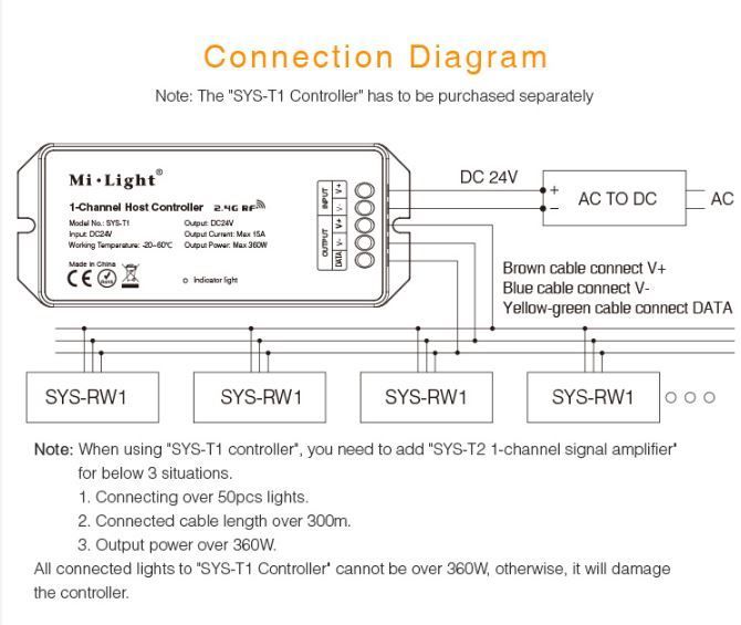 Product Name: 1-Channel Host Controller Model No.: SYS-T1 Input Voltage: DC24V Working Temperature: -20~60°C Output Voltage: DC24V Output Current: Max 15A Output Power: Max 360W Controlling Distance: ...Lieske Part No.: 1369175 Mfg Part No: SYS-T1 |