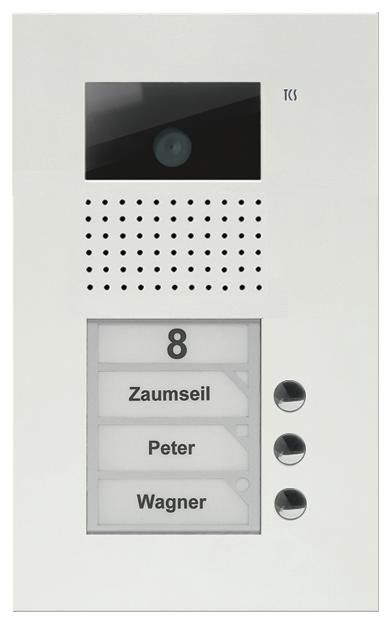 The article TCS AVU14030-0019 video color exterior, station 3 buttons UP 1 row white is currently not in stock und muss auftragsbezogen bestellt werden.