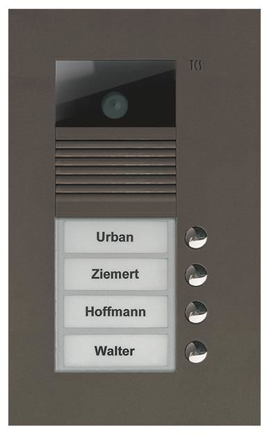The article TCS AVU14040-0012 video color exterior, station 4 keys 1 row UP bronze is currently not in stock und muss auftragsbezogen bestellt werden.