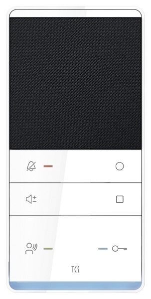 Product features: Use: VoIP-capable indoor station for hands-free talking, HTTP control functions / SIP call: on function keys, number of acoustic call distinctions: 4 (of which up to 2 from outdoor stations), voice transmission: hands-free / two-way communication, can be activated, number of selectable ring tones: 13 automatic hands-free talking after internal call: can be activated, privacy lock: yes, automatic call deactivation: yes, ringtone deactivation: on call-OFF button, ambient lighting: on light switch button, ringtone volume: adjustable, call volume: adjustable. Extended features: Door opener function: on door opener button, Light switch function: on light button, Internal call: can be activated, Automatic door opener: can be activated, Call forwarding: can be activated, Floor door opener function: can be activated, Additional connections: Floor button, LED (red): Ring tone deactivation, LED (green): Door and internal calls (short-term storage), busy indicator, Functionally expandable: Radio signal device, Mounting type: Surface mounting on flush-mounted box, Housing shape: Surface-mounted housing, Housing material: Plastic (ASA), Housing color: white, Base: can be pre-installed with plugged screw terminal, Number of wires: 6-wire required Installation mix audio, video, access in one system: possible Error display: optical / acoustic (sum error display on both LEDs), Commissioning and configuration: manual, with service device, with configuration software. AUDIO SPECIFICATION: Protocols: IPv4, TCP, UDP, CHCP, HTTP, HTTPS, SIP 2.0, RTP, Syslog, ICMP, ARP, Audio code: G.711a/µ, Audio transmission: Full duplex, Echo compensation: yes, Automatic gain control: yes. TECHNI