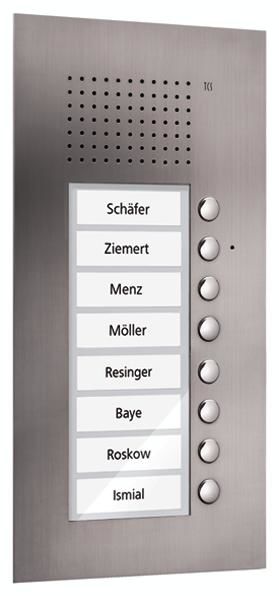 TCS PUK08/1-ES audio entry panel, 8 buttons 1 column flush stainless steel