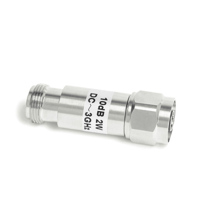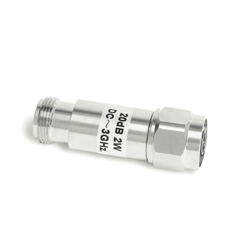 The TBAS1 RF 2W attenuator contains the following elements: 3dB RF attenuator, N connector, 3 GHz, 2W 6dB RF attenuator, N connector, 3 GHz, 2W 10dB RF attenuator, N connector, 3 GHz , 2W 20dB RF Attenuator, N-Connector, 3GHz, 2W SPECIFICATIONS Tolerance: 3, 6, 10dB +/- 0.5dB 20dB +/- 0.8dB Frequency Range: DC-3GHz, VSWR Power: 2W @ -55 to 45°C to 80°C with 50% power relief Connections: N plug / N socket bidirectional