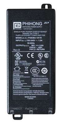 • Output Power: 30W (High Power PoE) IEEE802.3at
