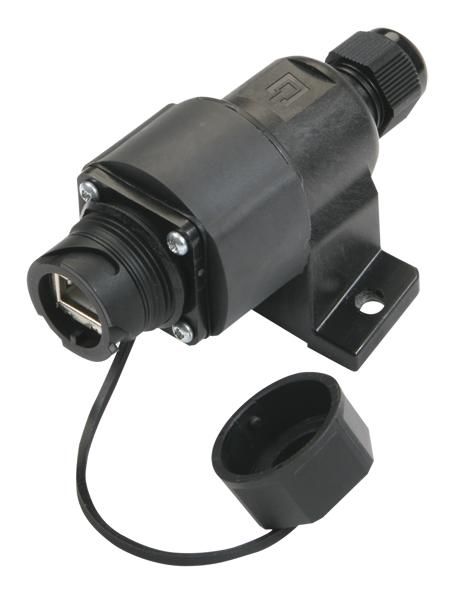 Optionally available with RJ45 Cat.6A (ISO/IEC), Cat.6 Class EA (ISO/IEC), USB or fiber optic insert