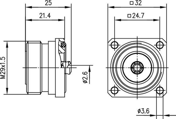 Telegärtner coax, 7-16 device socket 50 OHM