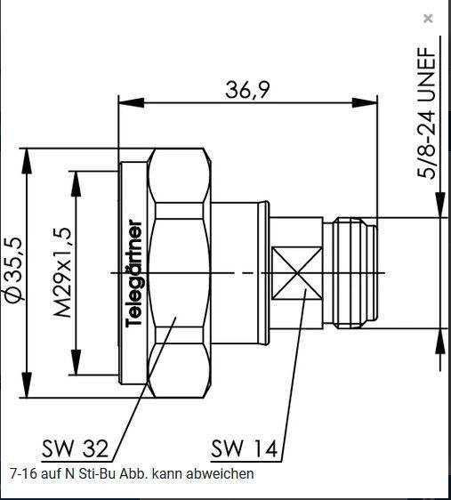 The article Telegärtner coax, adapter 7-16 - N, 50 ohms is currently not in stock und muss auftragsbezogen bestellt werden.