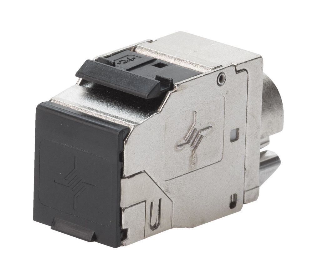 Notes: RJ45 connection module with fully metal cable clamp, ideal for the assembly of installation cables Cat.8.1/Cat.8.2