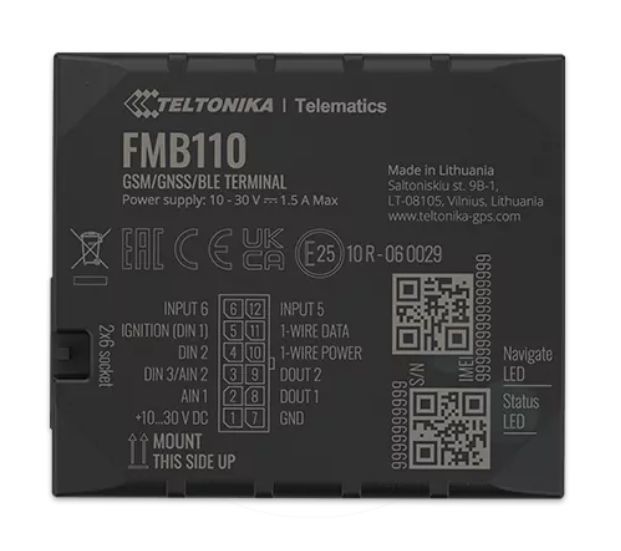 FMB110 small and professional tracker with internal high gain GSM and GNSS antennas, which can capture device coordinates and other useful data and transmit them to the server via the GSM network. This device is perfect for applications that require location detection of remote objects: fleet management, car rental companies, taxi companies, public transportation, logistics companies, private cars, etc. The FMB110 can perform tasks on remote objects such as: E.g. engine status monitoring, truck door control, etc.