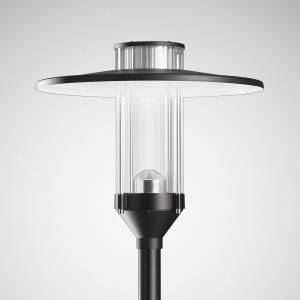 Decorative LED skylight lantern for mast mounting. With intelligent label for quick access to luminaire information using a QR code. For mast top Ø 76 mm. Also suitable for mounting on masts with a top Ø 60 mm using reducers that must be ordered separately. Matching mast on request. Optical system designed in multi-lens technology (MLT). Luminaire optics consisting of highly efficient, UV and temperature-resistant lens systems. With rotationally symmetrical, wide-beam light distribution. The subsequent installation of a rear / side shield is possible as an accessory that must be ordered separately. Luminaire luminous flux and light color are fixed, with constant luminous flux at the end of the service life (CLO). LED system consisting of 4 LED modules. Rated luminous flux 3800 lm, rated power 31 W, maximum luminaire luminous efficacy 123 lm/W. Light color neutral white, correlated color temperature (CCT) 4000 K, general color rendering index (CRI) Ra > 70. Color location tolerance (initial MacAdam) = 5 SDCM. Other LED light colors available on request. Average rated service life LCLO(tq 25 °C) = 100,000 h. The light source is replaceable in accordance with the ecodesign requirements (Regulation (EU) 2019/2020). Versions with 3-stage switch for setting different luminous fluxes on request. Luminaire body made of die-cast aluminum, luminaire roof made of corrosion-resistant aluminum, highly weatherproof powder-coated. Color black (RAL 9005). Coating suitable for marine weather on request. Luminaire roof powder-coated white on the inside. End cylinder made of highly impact-resistant PMMA, clear. Luminaire cover can be pushed up into self-locking service position. Protection class (EN 61140): II, protection type (DIN EN 60529):