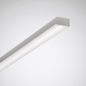 LED surface-mounted light for single or strip lighting applications. Surface-mounted light for ceiling mounting. With separately ordered installation accessories also suitable for use in panel ceilings (SFlow ZBP L2). For panel ceilings in module 100. With separately ordered accessories also suitable for suspended mounting (ZS1P 2000). Optical system in micro reflector technology (MRWD) with highly efficient, white-polished reflector chambers made of plastic with diffuser disc for an evenly illuminated light image with maximum visual comfort. With additional clear cover disc integrated in the optical system for flush-fitting on the room side and protection of the LED. Discreet lateral light output over the entire length of the light. With Lambertian light intensity distribution. Light luminous flux and light color permanently set. LED system and light optics can be snapped into the light body as an assembly without tools. Assembly secured with a steel cable to prevent falling during assembly. Rated luminous flux 3800 lm, rated power 28 W, maximum luminaire luminous efficacy 136 lm/W. Light color warm white, correlated color temperature (CCT) 3000 K, general color rendering index (CRI) Ra > 80. Color location tolerance (initial MacAdam) = 3 SDCM. Average rated service life L80(tq 25 °C) = 50,000 h. The light source is replaceable in accordance with the ecodesign requirements (Regulation (EU) 2019/2020). Luminaire body made of sheet steel. Surface coated silver gray (RAL 9006). Dimensions (L x W): 1413 mm x 84 mm, luminaire height 45 mm. Permissible ambient temperature (ta): -20 °C - +. Protection class (EN 61140): I, protection type (DIN EN 60529):