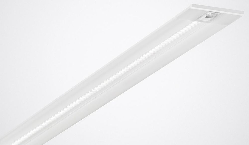 LED recessed light for single or strip light applications. With integrated LiveLink WiFi control unit and LiveLink sensor for daylight-dependent control and presence detection as well as a WLAN module for secure commissioning and operation (WPA2 encryption). Predefined room configurations (use cases) with all planning-relevant data enable simple and quick commissioning. Control of up to 64 DALI participants. Commissioning is carried out using the LiveLink Install commissioning app for tablet PCs. LiveLink Sensor IR Micro for daylight-dependent control and presence detection. Constant light control with switch-off function when there is sufficient daylight. Passive infrared presence sensor, with highly sensitive multi-segment pyro sensors, with adjustable switch-off delay time, optionally in automatic mode (automatic on, automatic off) or semi-automatic mode (automatic off, manual on). Special IQ mode for automatically adjusting the run-on time to the use of the room. Electrical supply via the DALI interface of the control unit. Occupies 2 DALI participants. Square detection, presence detection squares max. 4 mx 4 m (16 m2) / radial max. 4 mx 4 m (16 m2) / tangential max. 6 mx 6 m (36 m2) with a recommended installation height of 2.8 m, permissible installation height 2.5 m to 4 m. For installation in sawn ceiling openings. With installation accessories to be ordered separately, also suitable for use in panel ceilings (SFlow ZBP L2). For panel ceilings in module 100. Continuous light strips by connecting the luminaire bodies using tool-free assembly technology. Optical system in micro-reflector technology (MRW) with highly efficient reflector chambers made of white polished plastic for high lighting comfort and efficiency. With additional clear cover plate integrated in the optical system for flush-fitting on the room side and protection of the LED. Discreet lateral light output over the entire length of the luminaire. With symmetrical, wide-beam light distribution. Luminaire luminous flux and light color are fixed. LED system and luminaire optics can be snapped into the luminaire body as an assembly without tools. Assembly secured with a steel cable to prevent it from falling during assembly. Rated luminous flux 4000 lm, rated power 28 W, maximum luminaire luminous efficacy 143 lm/W. Light color neutral white, correlated color temperature (CCT) 4000 K, general color rendering index (CRI) Ra > 80. Color location tolerance (initial MacAdam) = 3 SDCM. Average rated service life L80(tq 25 °C) = 50,000 h. The light source is replaceable in accordance with the ecodesign requirements (Regulation (EU) 2019/2020). Luminaire body made of sheet steel. Surface coated white (RAL 9016). Dimensions (L x W): 1473 mm x 100 mm, luminaire height 45 mm. Protection class (EN 61140): I, protection type (DIN EN 60529):
