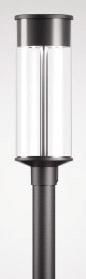 Decorative mast-top luminaire in cylinder shape. With intelligent label for quickly calling up luminaire information using a QR code. With autonomous power reduction via integrated evaluation electronics. Reduction of the luminaire luminous flux to 50% for a period of 7 hours (-2h/+5h), distributed around a daily new center of the duty cycle. Matching mast on request. In MLT version (multi-lens technology), consisting of highly efficient, UV and temperature-resistant lens systems in a quadruple arrangement. With asymmetrical wide beam light intensity distribution. For lighting streets according to P lighting classes. Additional beam characteristics are available for flexible adaptation to customer-specific lighting tasks. The subsequent installation of a rear / side shield is possible as an accessory to be ordered separately. Luminaire luminous flux and light color are fixed, with constant luminous flux at the end of the service life (CLO). Rated luminous flux 2600 lm, rated power 21 W, maximum luminaire luminous efficacy 124 lm/W. Light color neutral white, correlated color temperature (CCT) 4000 K, general color rendering index (CRI) Ra > 70. Color location tolerance (initial MacAdam) = 5 SDCM. Other LED light colors available on request. Average rated service life LCLO(tq 25 °C) = 100,000 h. The light source is replaceable in accordance with the ecodesign requirements (Regulation (EU) 2019/2020). Luminaire body made of die-cast aluminum. Luminaire roofs made of corrosion-resistant aluminum. Surface anthracite coated (DB 703). Coating suitable for marine weather on request. End covers made of highly impact-resistant PMMA, clear Protection class (EN 61140): II, Protection type (DIN EN 60529):