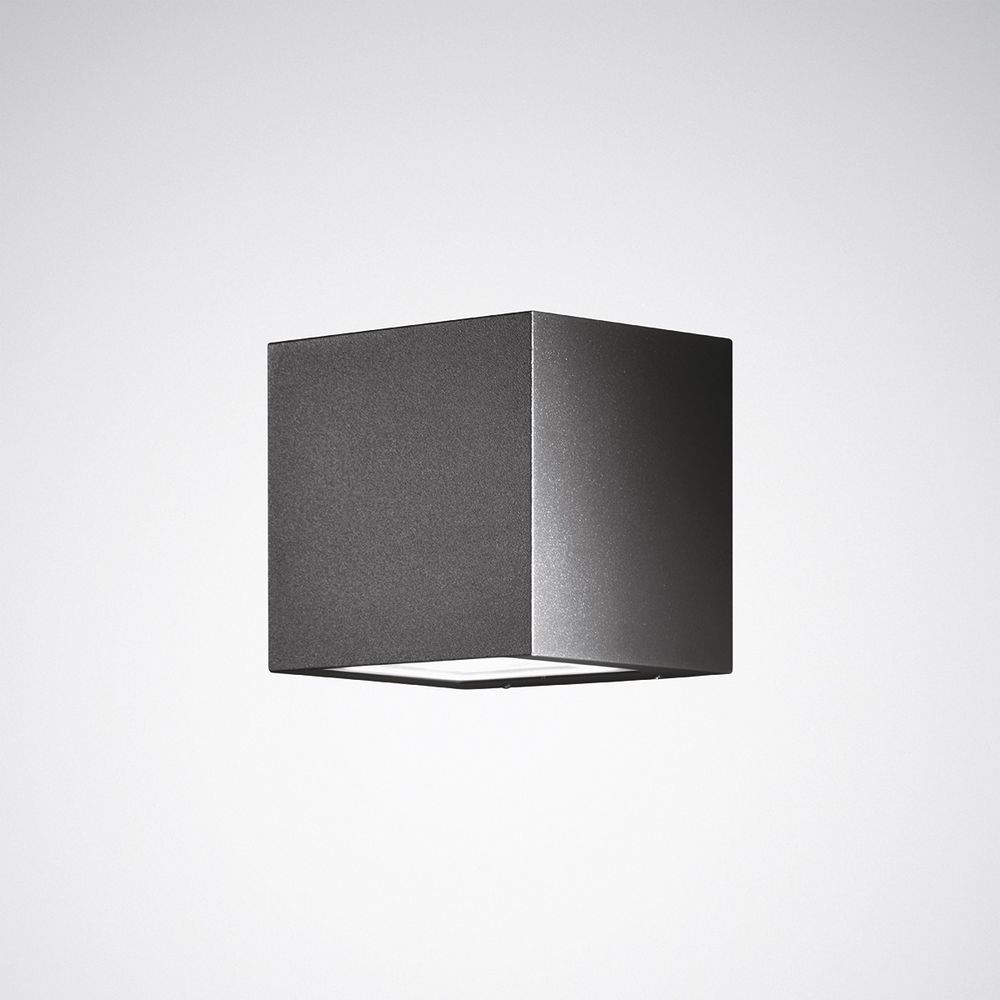IP65. Cover plate made of hardened, highly transparent glass. With two light emission areas, direct-indirect beam. Can also be used holistically inside buildings. Surface-mounted light for wall mounting. The light is attached using a mounting plate made of cast aluminum. Mirror optics made of highly efficient aluminum. With asymmetrical wide beam light distribution. With asymmetrical wide beam light distribution. Luminaire luminous flux and light color fixed. Rated luminous flux 1520 lm, rated power 32 W, maximum luminaire luminous efficacy 48 lm/W. Light color warm white, correlated color temperature (CCT) 3000 K, general color rendering index (CRI) Ra > 80. Color location tolerance (initial MacAdam) = 3 SDCM. Average rated service life L80(tq 25 °C) = 50,000 h. Luminaire body made of die-cast aluminum. Lamp body anodized, primed and powder-coated. Surface anthracite coated (DB 703). On request, the lamp body can be made in the following colors at no extra cost: Black textured (Akzo Nobel 8118669, similar to RAL 9005, V5), White textured (Akzo Nobel 8158870, similar to RAL 9016, V6), Gray textured (Akzo Nobel 8129595, similar to RAL 9006, V7). Other color variants according to RAL or DB color code are available on request for an additional charge. Dimensions (L x W): 150 mm x 150 mm, lamp height 150 mm. On request, the lamp body can be made in the following colors at no extra cost: Black textured (Akzo Nobel 8118669, similar to RAL 9005, V5), white textured (Akzo Nobel 8158870, similar to RAL 9016, V6), gray textured (Akzo Nobel 8129595, similar to RAL 9006, V7). Other color variants according to RAL or DB color code are available on request for an additional charge. Protection class (EN 61140): I, protection type (DIN EN 60529):