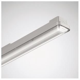 IP 66 for use in applications with high demands on variability, efficiency, light quality and technology. The luminaire is part of a range with identical, technically compatible variants. These variants are available with alternative optical systems, light engines with adjustable luminous fluxes and with connection options to light management and emergency lighting systems. Suitable for use in HACCP, IFS and/or BRC Global Standard Food certified companies. With limited surface temperature, suitable for use in fire-hazardous rooms in accordance with DIN EN 60598-2-24. With clipless locking technology for easy installation of the diffuser cover and luminaire body in accordance with the protection class after connection. Suspended installation possible using optional accessories. Ceiling mounting using the enclosed stainless steel fastening clip. Suspended installation possible using optional accessories. With a prismatic, photometrically effective, translucent PC cover, direct beam. With symmetrical, wide beam light distribution. Luminaire luminous flux and light color fixed. Rated luminous flux 4100 lm, rated power 25 W, maximum luminaire luminous efficacy 164 lm/W. Light color neutral white, correlated color temperature (CCT) 4000 K, general color rendering index (CRI) Ra > 80. Color location tolerance (initial MacAdam) = 3 SDCM. Average rated service life L80(tq 25 °C) = 70,000 h, average rated service life L80(tq 35 °C) = 50,000 h. The light source is replaceable in accordance with the ecodesign requirements (Regulation (EU) 2019/2020). Luminaire body made of PC. Luminaire body color light gray (RAL 7035). Dimensions (L x W): 1552 mm x 102 mm, luminaire height 91 mm. Permissible ambient temperature (ta): -30 °C - +35 °C. Protection class (EN 61140): I, protection type (DIN EN 60529):