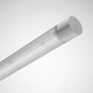 Multivariable and modern tubular luminaire with 75 mm profile diameter. With limited surface temperature, suitable for use in fire-hazardous rooms in accordance with DIN EN 60598-2-24. For wall and ceiling mounting. Standard stainless steel mounting clips (2 pieces, V2A) with triangle included in delivery. Optional accessories enable further mounting concepts. As a single luminaire or in light strip application. The continuous mounting channel of the luminaire body allows a very high degree of flexibility in the placement of the fastening points. The packaging is made of recyclable cardboard, plastic-free. Multiple packaging with 28 luminaires and project packaging with 108 luminaires per packaging unit also reduce the general consumption of resources in the overall process. Cylinder profile with photometrically effective prism structure as secondary optics. With opal profile area above and translucent profile area below the mounting channel. With symmetrically wide beam light intensity distribution. With predominantly direct beam light intensity distribution. With slight indirect component to brighten the surface. Luminaire luminous flux and light color fixed. Rated luminous flux 5000 lm, rated power 30 W, maximum luminaire luminous efficacy 167 lm/W. Light color warm white, correlated color temperature (CCT) 3000 K, general color rendering index (CRI) Ra > 80. Color location tolerance (initial MacAdam) = 3 SDCM. Average rated service life L80(tq 25 °C) = 70,000 h. The light source is replaceable in accordance with the ecodesign requirements (Regulation (EU) 2019/2020). Luminaire profile made of polycarbonate (PC). Color of the end caps gray (RAL 7035). End cap made of thermoplastically fused PC / TPE with high-quality, matt surface structure and surface quality according to VDI30. For protection class-compliant power supply