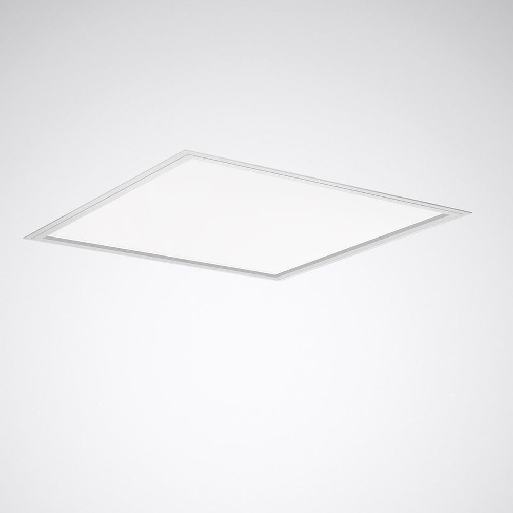 Square LED recessed light with microprismatic cover PW. Version M84 (625 mm x 625 mm). The light can optionally be equipped with an emergency lighting system for ceiling installation with an emergency lighting operating time of 3 hours. In emergency light mode, the luminaire's luminous flux is 575 lm. Creation of a deeper spatial effect. For system ceilings with visible support rails. The light body is flush with the ceiling system on the room side. In combination with accessories that can be ordered separately, it is suitable for sawn ceiling openings and for flush-mounted installation. The sky frame, which is optionally available as an accessory, creates a spatial atmosphere of depth in the classic, flat modular ceiling, simulating the 3-dimensional contour of a skylight. The optical system consists of a highly efficient PMMA cover with microprismatics. PW (prismatic wide). The microstructured PMMA prism surface of the optical system has a glare-reducing effect, is non-yellowing and does not cloud. With a deep-wide beam of light intensity distribution. Glare rating according to UGR classification (EN 12464-1) 80. Average rated service life L80(tq 25 °C) = 100,000 h, average rated service life L90(tq 25 °C) = 50,000 h. The light source is replaceable in accordance with the ecodesign requirements (Regulation (EU) 2019/2020). Luminaire body made of extruded aluminum profile. Frame powder-coated white (RAL 9016). Luminaire dimensions (L x W x H): 620 mm, 620 mm, 22 mm. The all-round edge of the frame profile makes installation easier. The luminaire frame is profiled in 3 dimensions to create a depth effect in the ceiling. Luminaire can be covered with insulation material at ta 25°C, ta35 °C can also be used without insulation material. Protection class (EN 61140): II, protection type (DIN EN 60529):