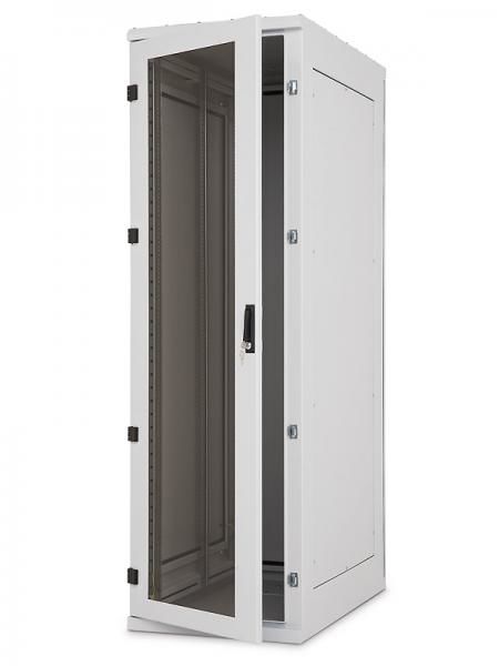 Color: RAL 7035 - light gray Width: 600 mm Depth: 1000 mm Height: 45 U (2105 mm) Front door: Glass door left-handed, opening angle 180° Closing of the front door : Multi-point locking with Ergoform handle and security lock Right side wall: solid sheet metal, with two security locks Left side wall: solid sheet metal, with two security locks Rear wall/rear door: solid sheet metal rear wall, with two security locks Closing of the rear door: security lock for rear wall