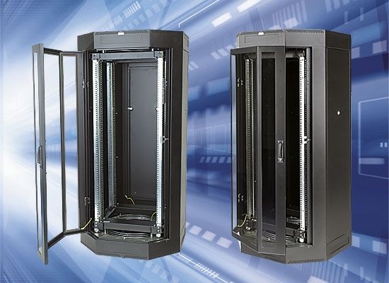 * Aufttragsbezogen, non-cancellable, Pre-assembled, Octagon, 4xLochrasterprofil, H2294xB900xT900mm, 251Kg, 1xBürstensatz, rear and side part removable 4xÖffnungen for cable entry, sheet steel housing, 16xMontagesätze M6, RAL9005 Black, 4xNivellierfüße, glass door with lock, max.Belastung 250Kg